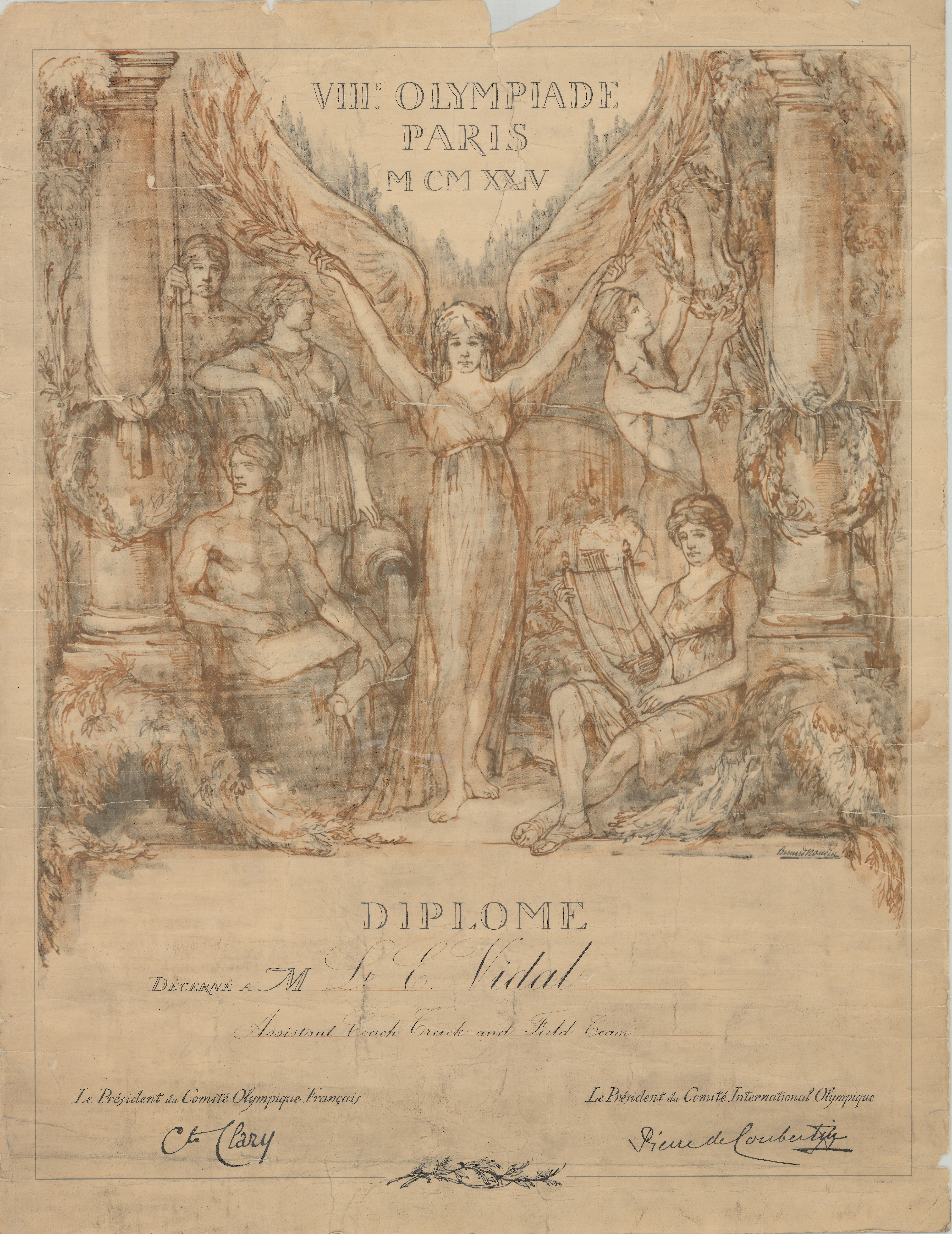 Commemorative certificate from the 1924 Olympics in Paris. Box 5, Eugene Vidal papers. American Heritage Center, University of Wyoming.